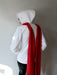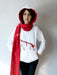 Made from sweatshirt cotton and polyester fleece, this is a high quality hoodie for everyday wear and casual cosplay! The red scarf is a part of the hood and quite long!