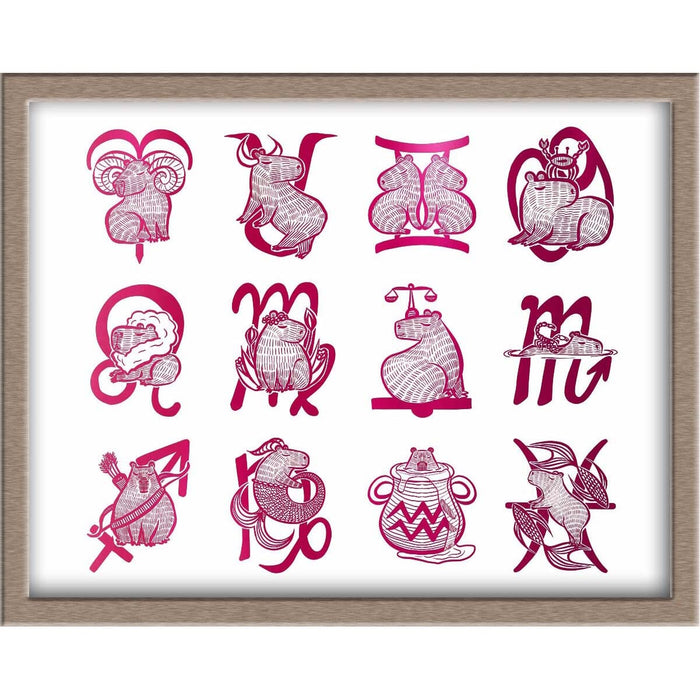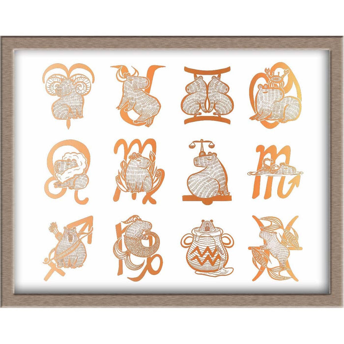 All the Capybara Zodiac Signs Foiled Print (Horizontal)