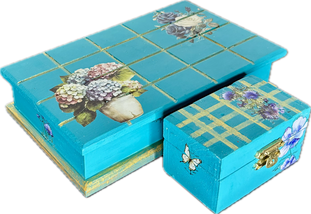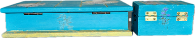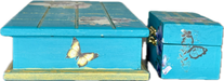 Blue Painted Vintage Jewelry Box with Bonus Trinket Box
