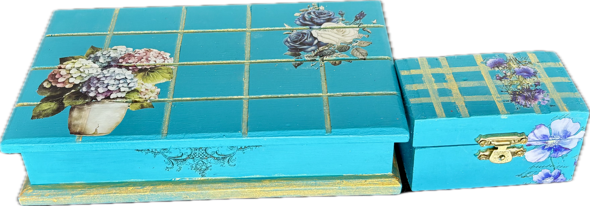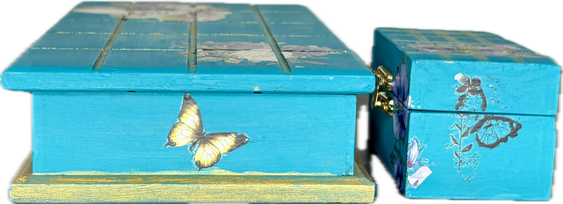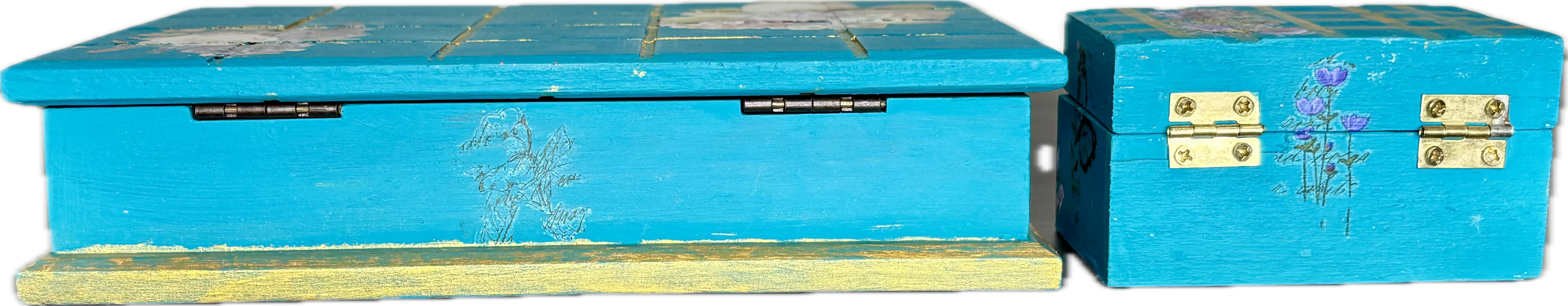Upcycled Vintage Wooden Jewelry Box – Bright Blue Cottage Core Keepsake with Bonus Trinket Box