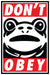 Don't Obey weatherproof vinyl stickers, approx 4" x 6", pack of 10.