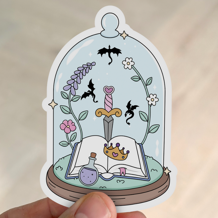 Dragon Books Glass Dome Book Lover Sticker | Laminated Waterproof Vinyl Die Cut