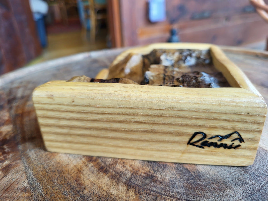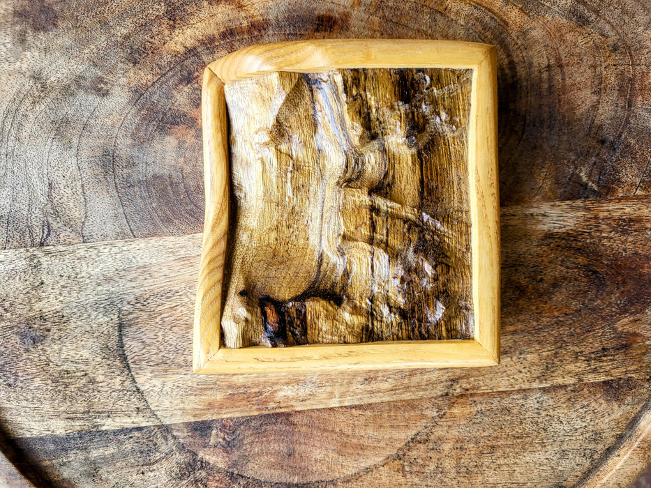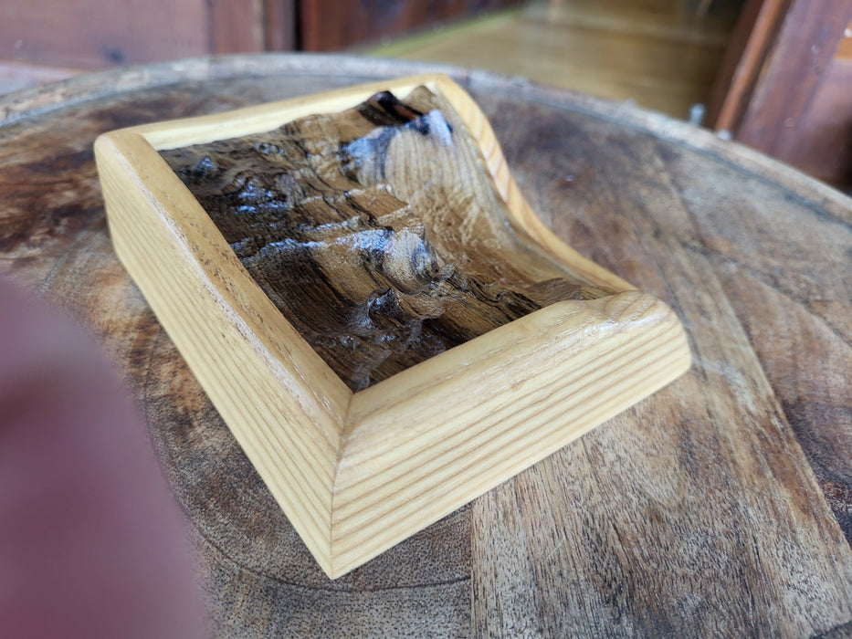 The Noctis Labyrinthus, Mars is known for its maze-like system of deep, steep-walled valleys. An interior detail from one small part of it was carved into this small hunk of white limba and framed with a contoured and matching ash frame. Bring a bit of the Martian surface to your IRL desktop.