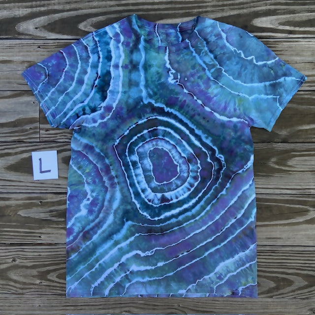 Hand ice dyed, tie-dye 100% cotton t-shirt.