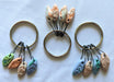 Small, leaf-shaped stitch markers, made with polymer clay! They come in sets of four, as shown in the images. They come with gourd pins by default.