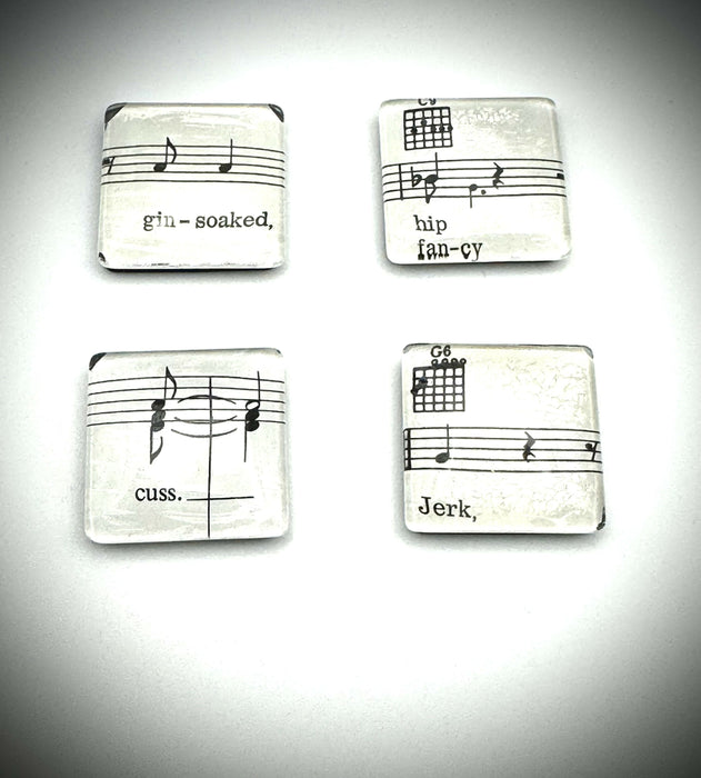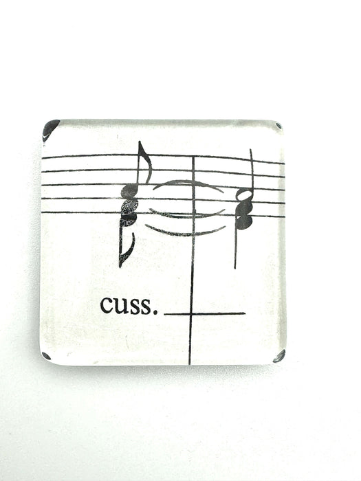 This naughty music magnet features the sassy lyric “cuss.——”. Magnet is 1 1/4 inches square and is topped with a cabochon.
