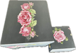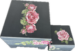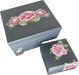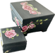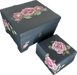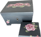 Upcycled Vintage Trapezoid Wooden Jewelry Box & Matching Trinket Box – Charcoal Gray with Shiny Pink Roses