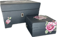 Painted Vintage Gray Floral Jewelry Box with Bonus Trinket Box