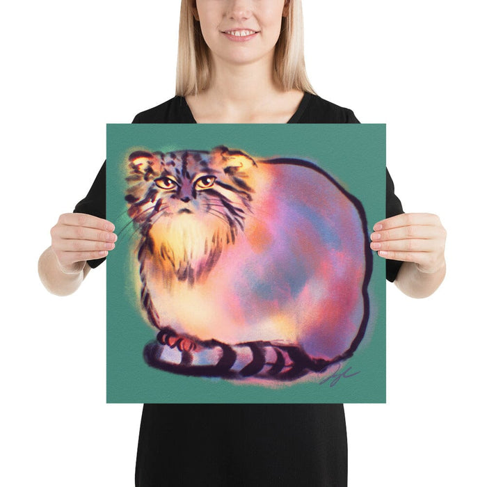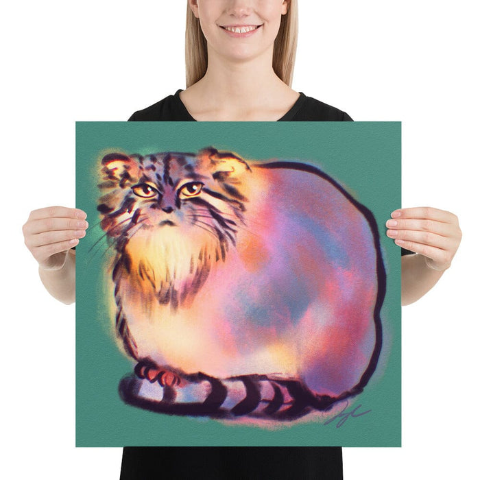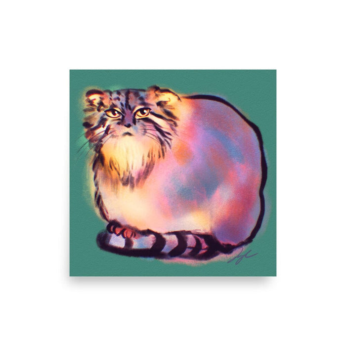 This playful painting captures the grumpy yet lovable Pallas's Cat standing on his tail to keep his paws warm. Hand-painted with vibrant colors, it adds a unique touch to any space. A purrfect addition to your collection!