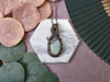 This exquisite wire-wrapped pendant features an Amazonite gemstone, skillfully crafted in the intricate technique of wire wrapping. The gentle curves of the wire create an elegant and unique design, enhancing the natural beauty of the Amazonite. Known for its soothing and calming properties, Amazonite is believed to promote balance and harmony. The stone exhibits a captivating range of green hues, reminiscent of the lush rainforests, making each pendant a one-of-a-kind piece. The wire wrapping not only adds a touch of artistry but also securely cradles the Amazonite, allowing its energy to be harnessed and worn close to the heart. This handcrafted pendant seamlessly blends craftsmanship and the metaphysical qualities of Amazonite, making it a meaningful and stylish accessory.