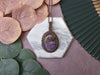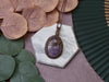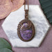 This wire-wrapped pendant features a mesmerizing piece of purple-hued purpurite, skillfully crafted into a unique design. Purpurite, known for its stunning violet tones, is a manganese phosphate mineral renowned for its metaphysical properties. This crystal is believed to enhance spiritual insight, promote clarity of thought, and stimulate intuition. The wire wrapping technique not only adds an artistic flair to the pendant but also ensures that the purpurite is securely nestled, allowing its energy to be harnessed optimally. With its rich color and reputed spiritual benefits, this purpurite pendant is not just a stylish accessory but also a meaningful adornment for those seeking a connection to higher consciousness.